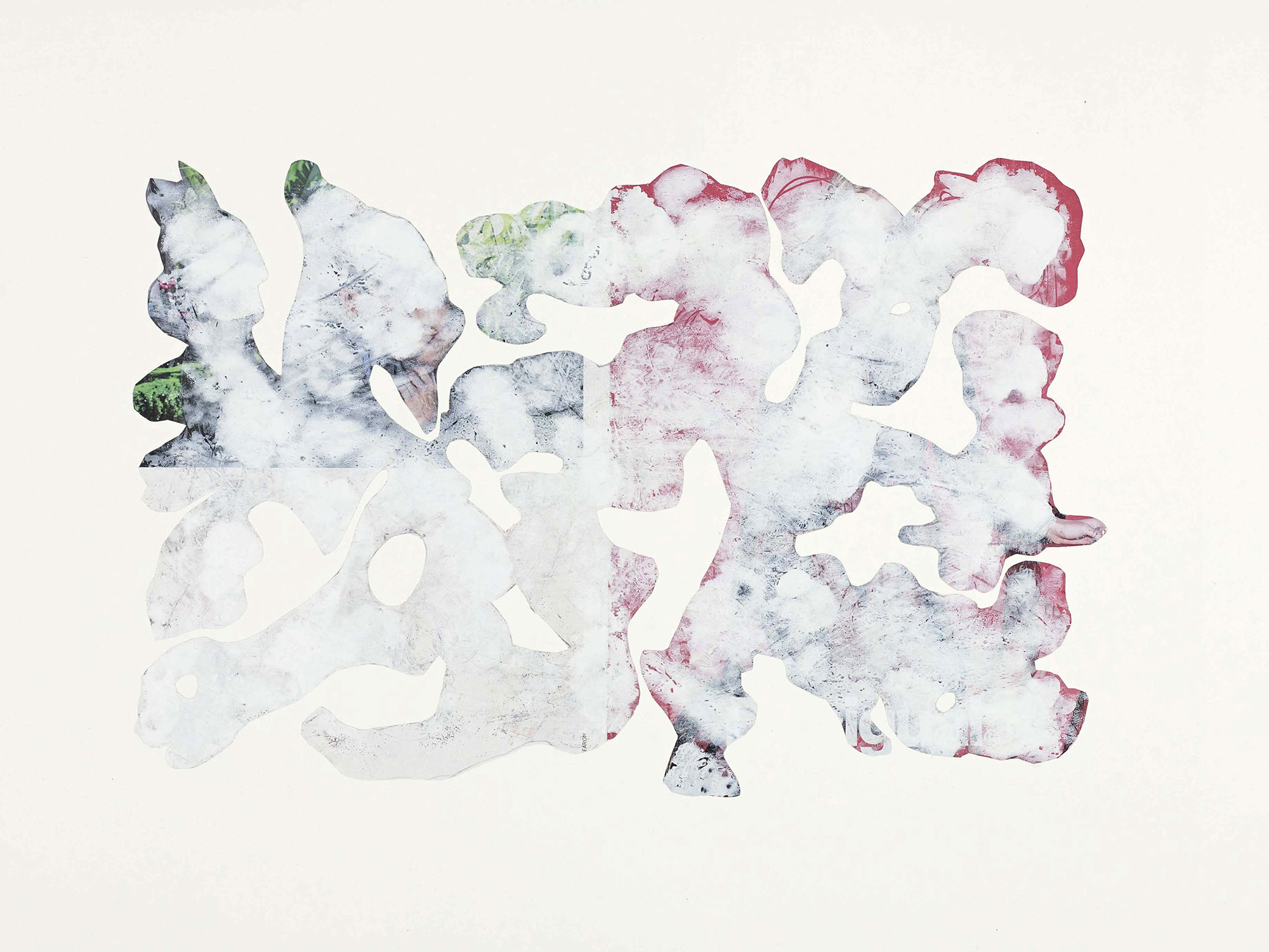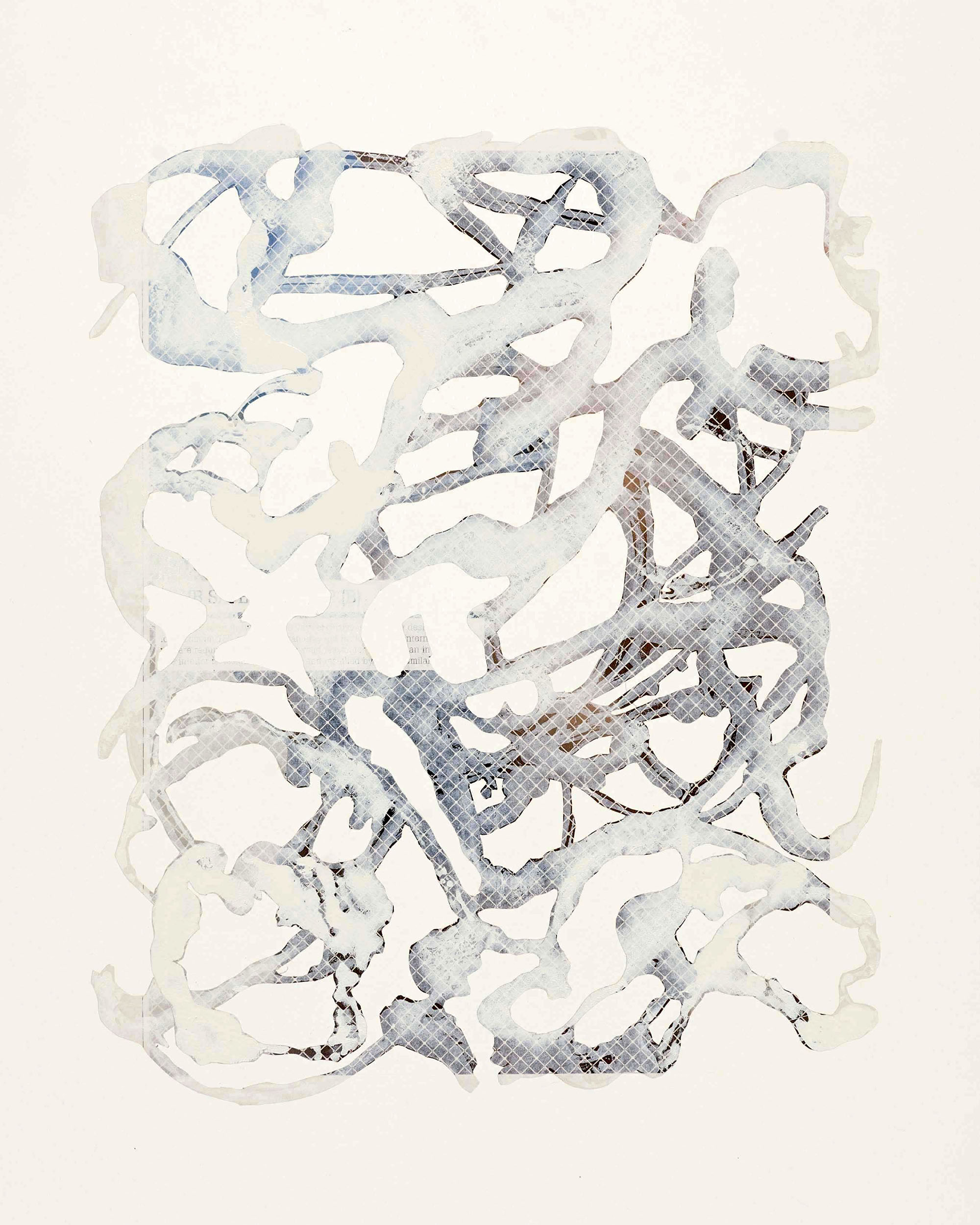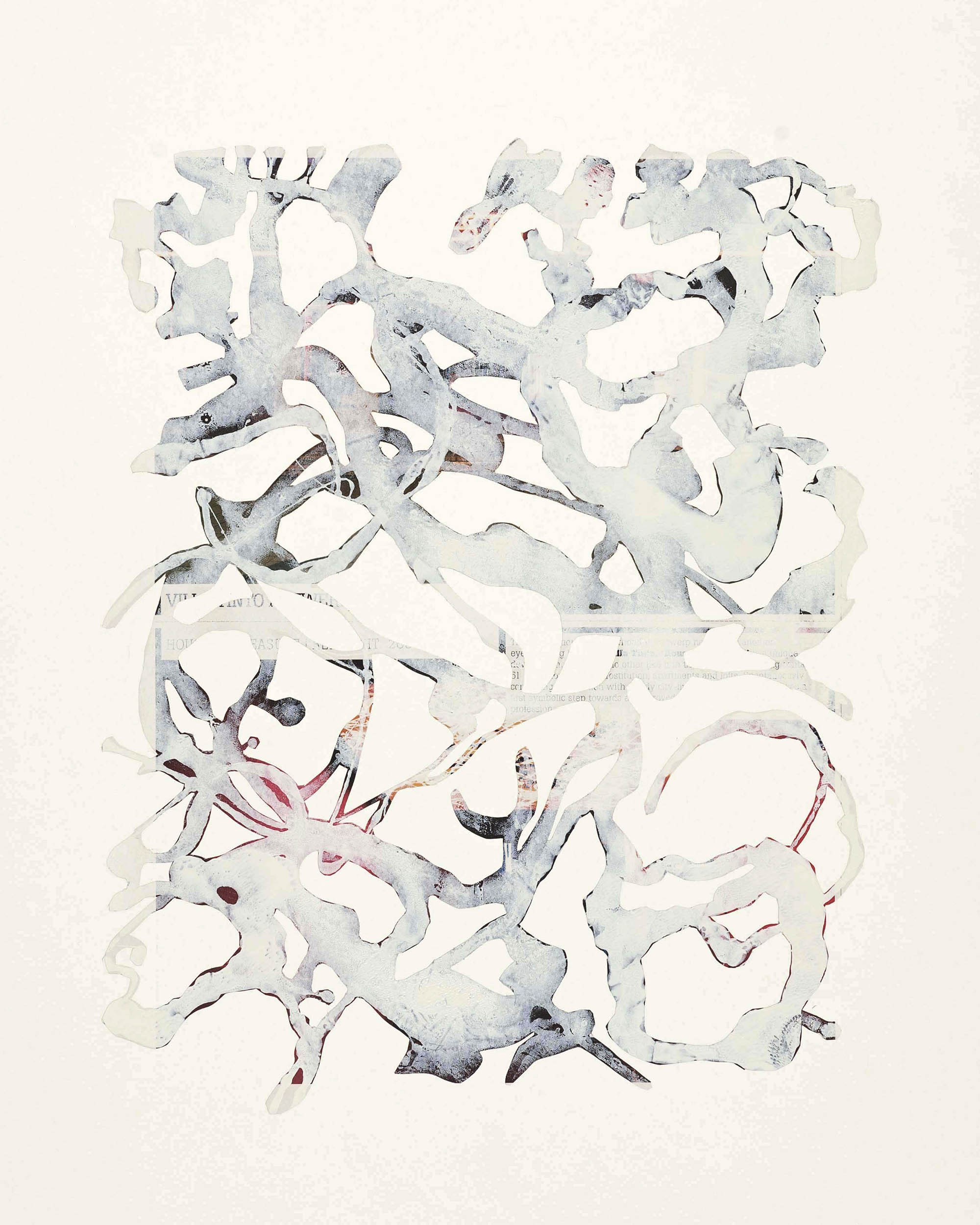Pigmenti bianchi si stratificano su vecchie carte stampate, prima velando e poi rivelando. Nuove immagini, rinvenute nei grovigli di bianco – materia sopravvissuta a incisioni e tagli – prendono forma: sono le (R)esistenze. Rimanenza (r)esistita a un processo psichico che ha generato una nuova visione. Prodotto residuale che trova nel prefisso “r” di (R)esistenze un marchio profondo e inquieto, che sottolinea una tensione fra ciò che appare e ciò che è. Le raffigurazioni si sostengono su elementi sottili e archetipali connessi all’essenza più profonda dell’individuo. Ogni (R)esistenza è connotata da forme apparentemente sprovviste di schemi, pregne di suggestioni, vapori e umori, iconografie e mitologie sfumate, in cui le figure si aprono come nubi lattiginose e cirri, lasciando in evidenza un’essenza organica e ancestrale. Un’Arcadia spirituale o un Eden alchemico, ove raffigurazioni arcaiche e religiose sono distillate in essenze sincretiche.