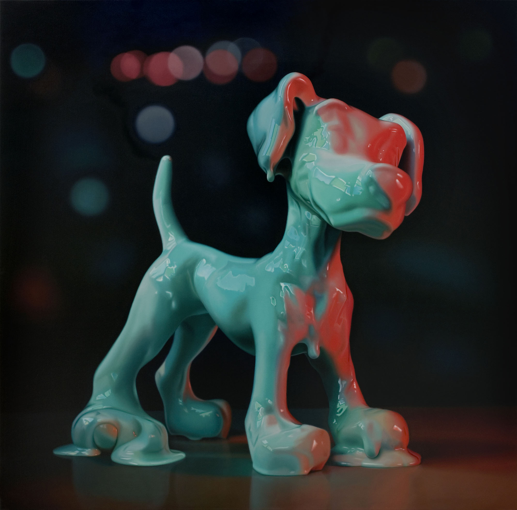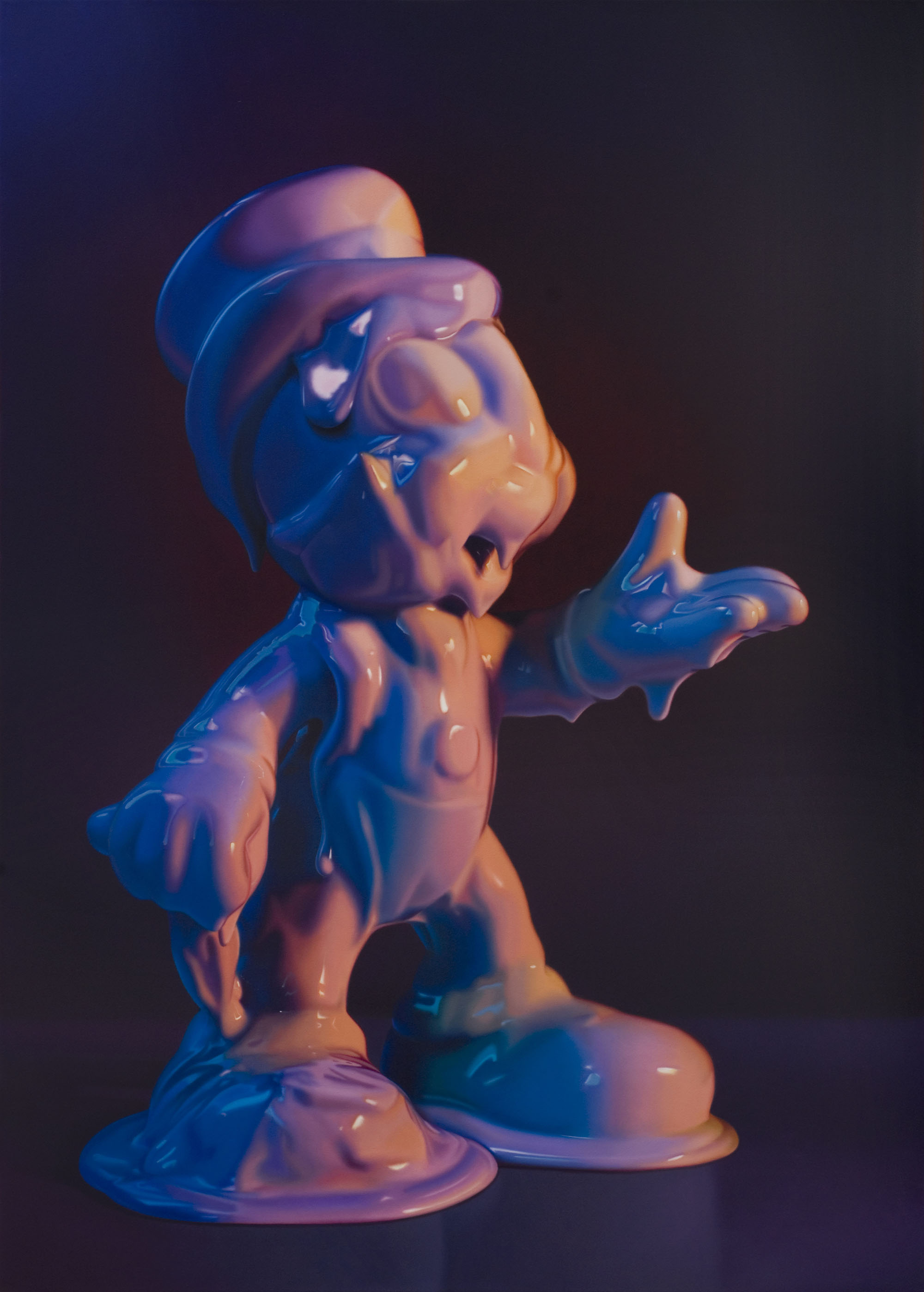 Condizione apparentemente ipnagogica, in cui si aprono miraggi di un mondo colorato, gioioso, sorta di Paese dei Balocchi che, dopo le prime sensazioni di appagamento, lascia subito il posto a un senso di sconforto e impotenza: la percezione del dissolversi del sogno fanciullesco, del liquefarsi incessante e inarrestabile dei pupazzi che, quali simboli, lo personificano.