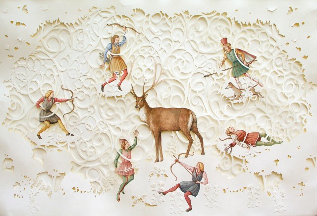 Vanni Cuoghi, Il Dono del Grande Cervo, 2012, acquerello su carta, 110×75 cm.