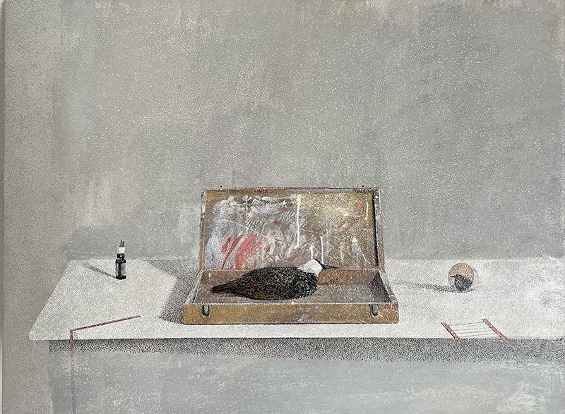 Alessio Vaccari, Malato immaginario, 2021, olio su tavola, 40×30 cm.